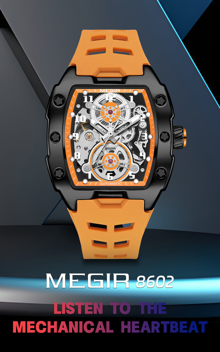 MEGIR Original Luxury Sport Watch for Men Silicone Band Automatic Mechanical Movement WristWatches Luminous Clock Reloj Hombre 8601