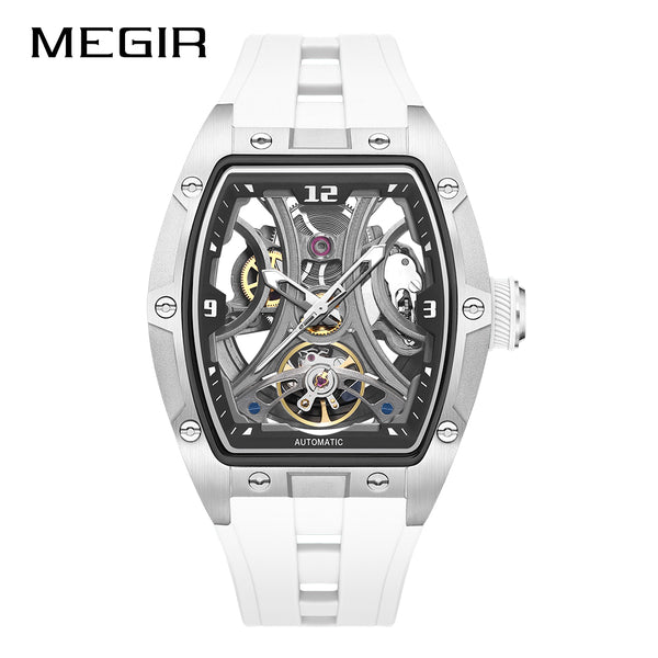 MEGIR New Men Watches Luxury Brand Automatic Mechanical Watch Skeleton Dial Silicone Strap Sports Casual Wristwatch Waterproof Clock Male Gift 8602