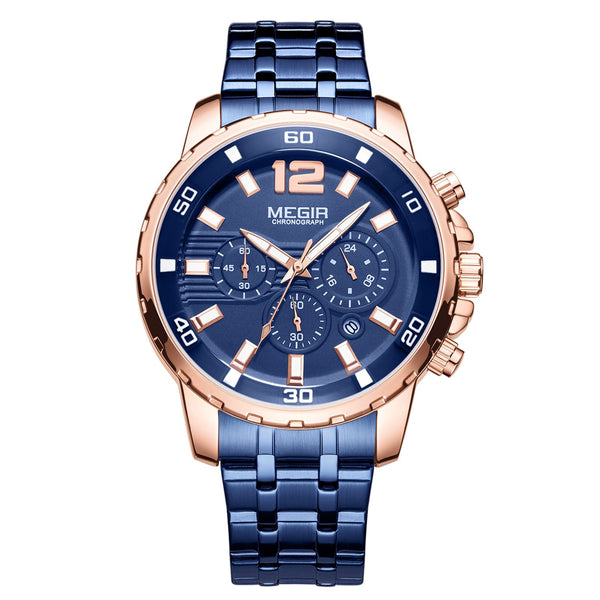 MEGIR Luxury Mens Stainless Steel Watches Fashion Brand Business Quartz Wristwatch Date Luminous Man Chronograph Casual Clock 2217