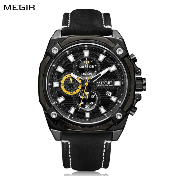 MEGIR Top Brand Watches for Men Waterproof Leather Quartz Wrist Watch Luminous Chronograph Date Calendar Men Clock Reloj Hombre 2061