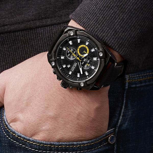 MEGIR Men Watches Original Fashion Leather Quartz Wristwatch Top Brand Military Chronograph Big Dial Sports Clock Reloj Hombre 2020
