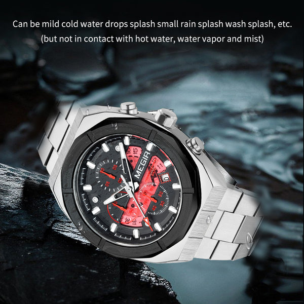 MEGIR Original Luxury Men Chronograph Stainless Steel Wristwatch Waterproof Luminous Quartz Watch Clock Calendar Reloj Hombre 2063