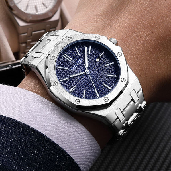 MEGIR Luxury Business Watches for Men Stainless Steel Strap Waterproof Calendar Male Quartz Wristwatch Clock Reloj Hombre 1086