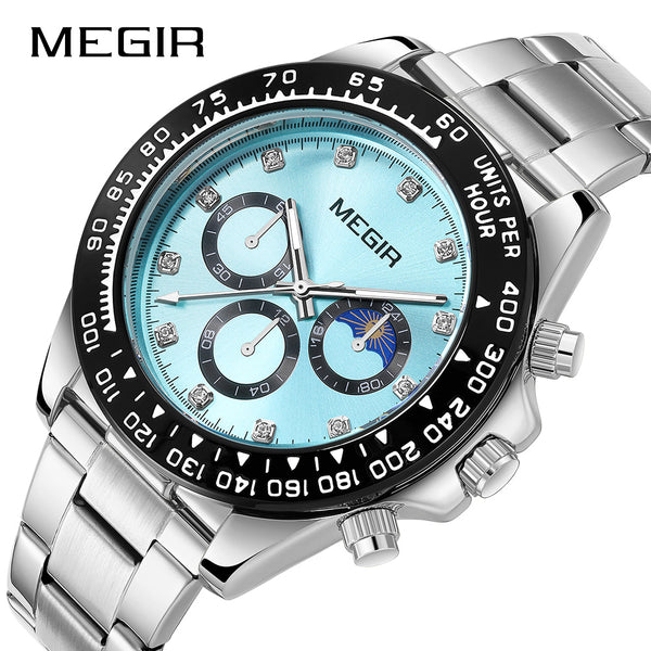 MEGIR Fashion Men Watches Top Luxury Stainless Steel Quartz Wristwatch Calendar Luminous Clock Large Dial Relogio Masculino 2064