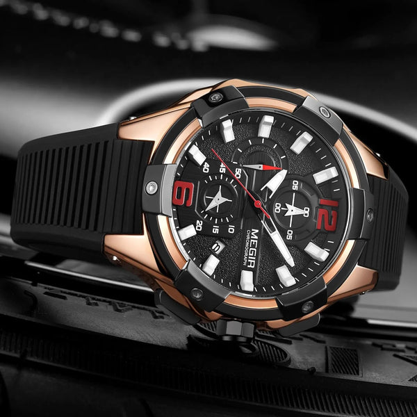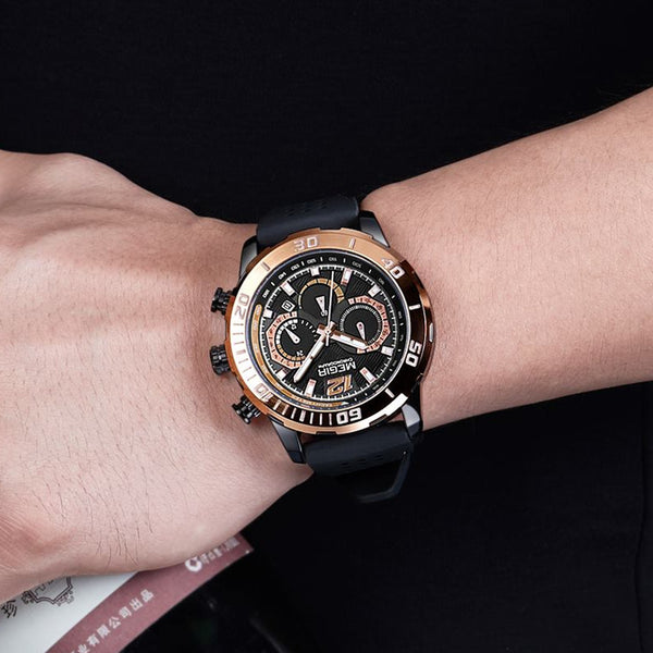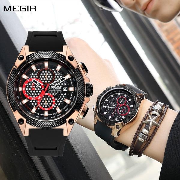 MEGIR Fashion Sports Watches for Mens Luxury Quartz Casual Wristwatch Relogio Masculino Man Chronograph Silicone Strap Clock 2045