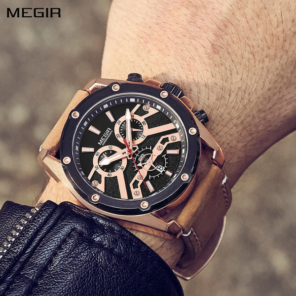 MEGIR Luxury Sports Watches for Men Waterproof Quartz Wrist Watch Chronograph Fashion Leather Military Clock Reloj Hombre 2070