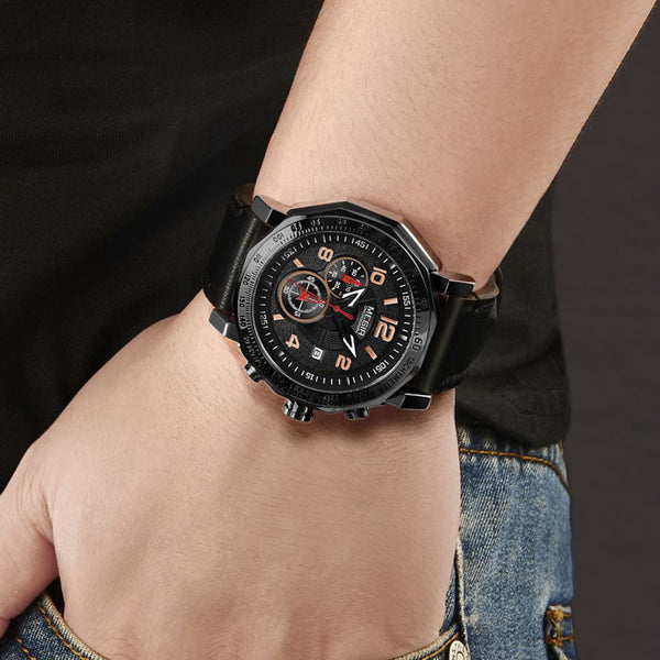 MEGIR Men's Sport Watch Large Dial Quartz Luminous Wristwatch Date Clock Fashion Relogio Masculino Leather Chronograph for Men 2048