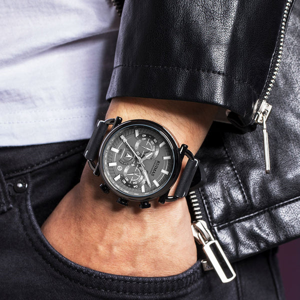 RUIMAS Men Wristwatch Luxury Leather Sports Military Wrist Watches Waterproof Large Dial Casual Quartz Clock Relogio Masculino 594