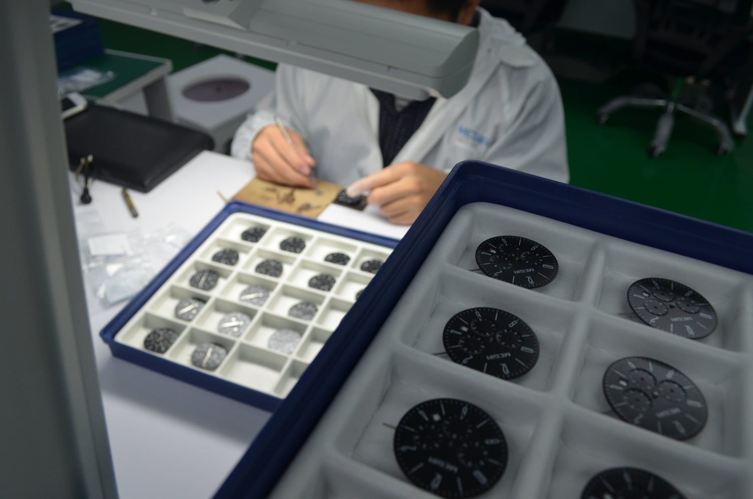 Under precise lighting, our skilled technicians carefully assemble each watch hand onto the dial. Every detail is handled with accuracy and patience to ensure perfect alignment, reliable performance, and exceptional craftsmanship in every timepiece.