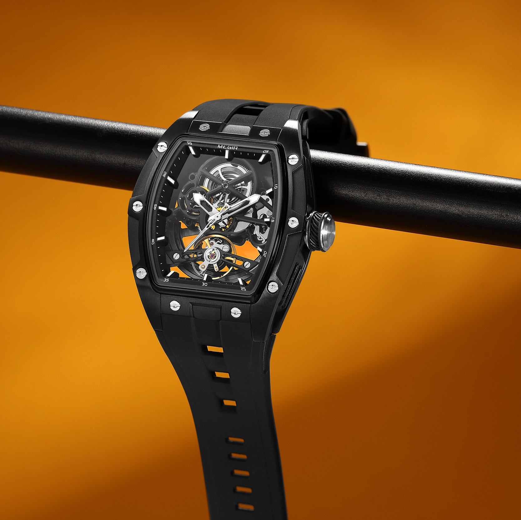 MEGIR 100% Original Fashion Men Watches Automatic Mechanical Watch Steel Case Sport Skeleton Wristwatch Waterproof Clock Reloj Hombre 2242
