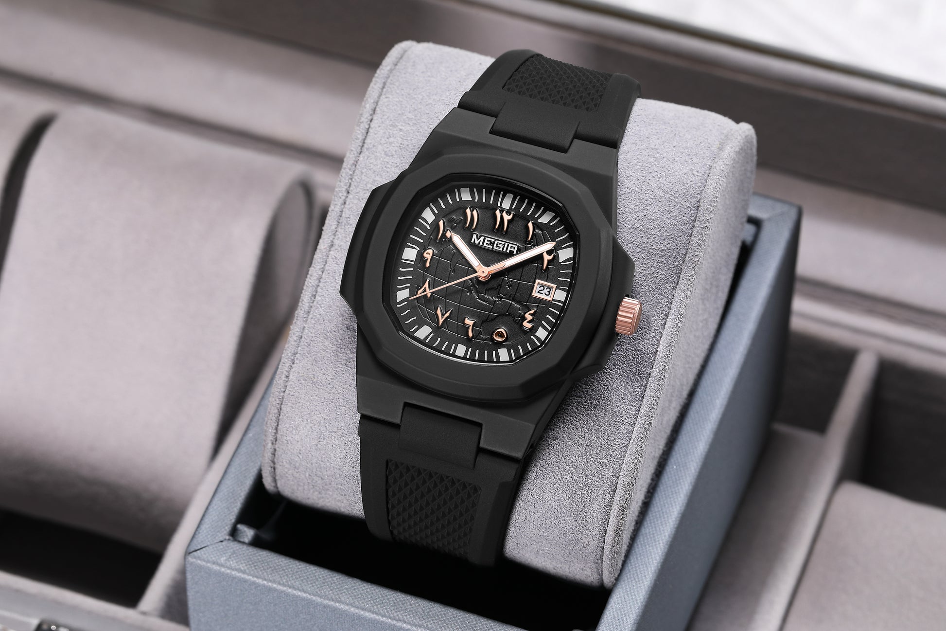 MEGIR 43MM Irregular Dial Men Watches Quartz Waterproof Sport Casual Wristwatch Clock Date Gifts for Man Reloj Hombre 8119