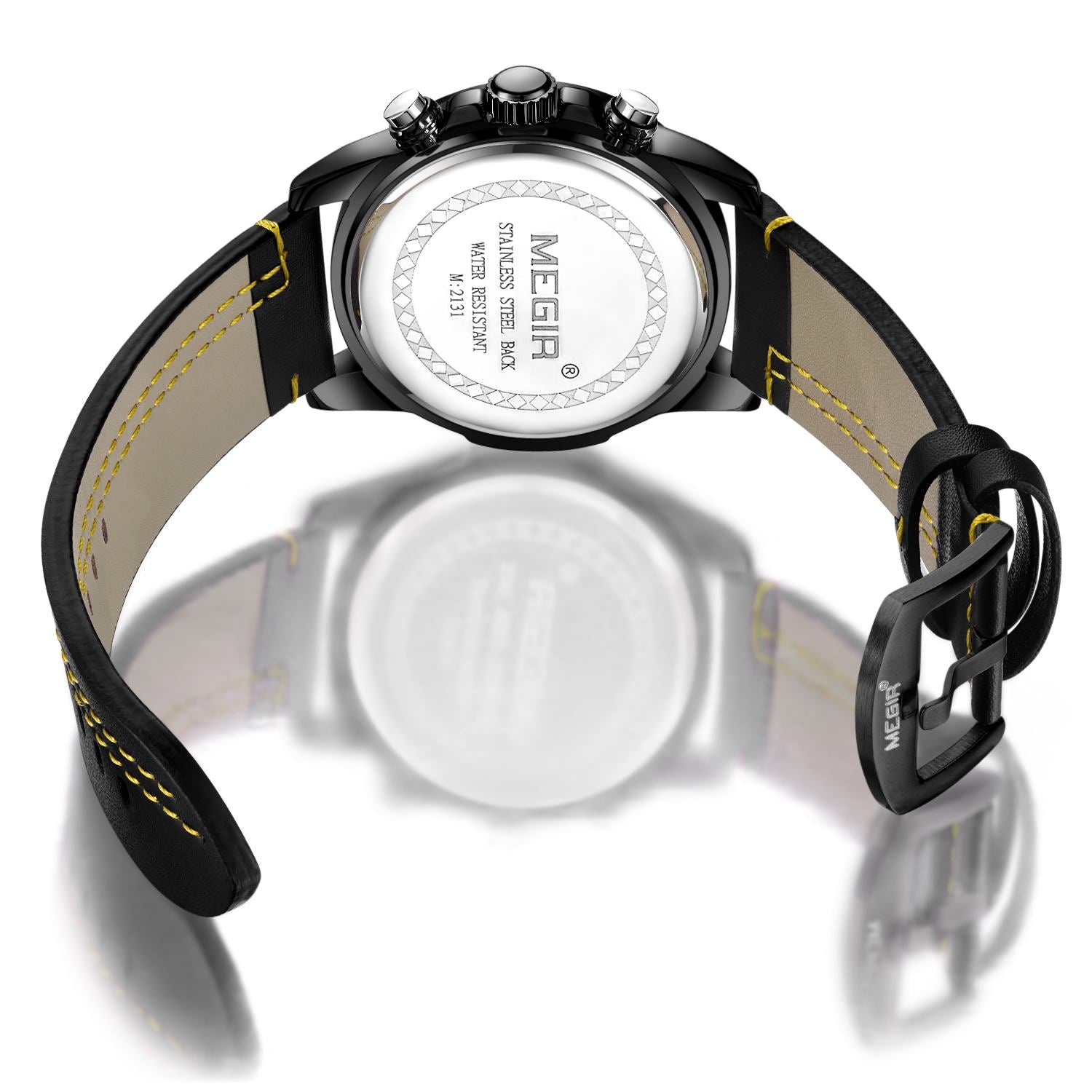 MEGIR Black Luxury Men's Wrist Watch Man Leather Strap Waterproof Chronograph Sports Men Watches Clock Hour Quartz Wristwatches