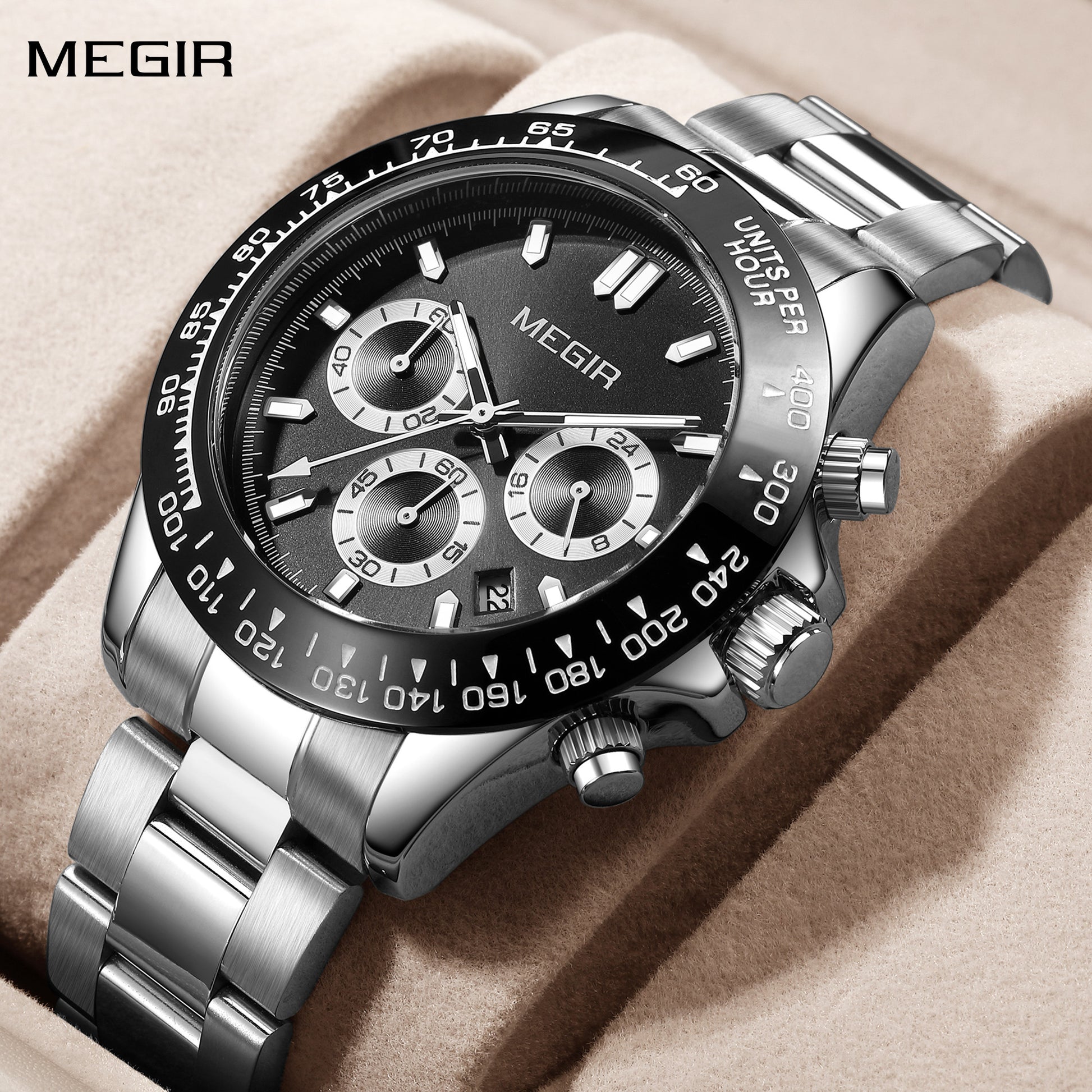MEGIR Fashion Men Business Watches Stainless Steel Quartz Watch Top Brand Luxury Casual Wristwatch Waterproof Clock Reloj Hombre