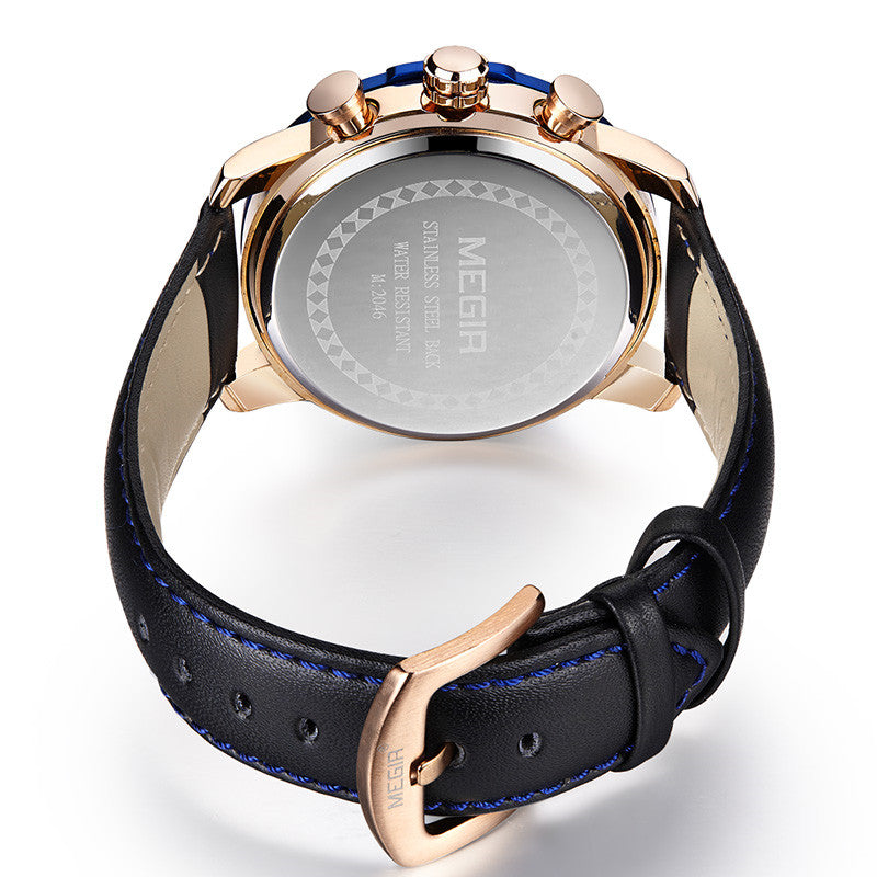 MEGIR Fashion Men's Quartz Watch Top Brand Luxury Business Casual Wristwatch Leather Strap Military Sports Watch Male Clock 2046
