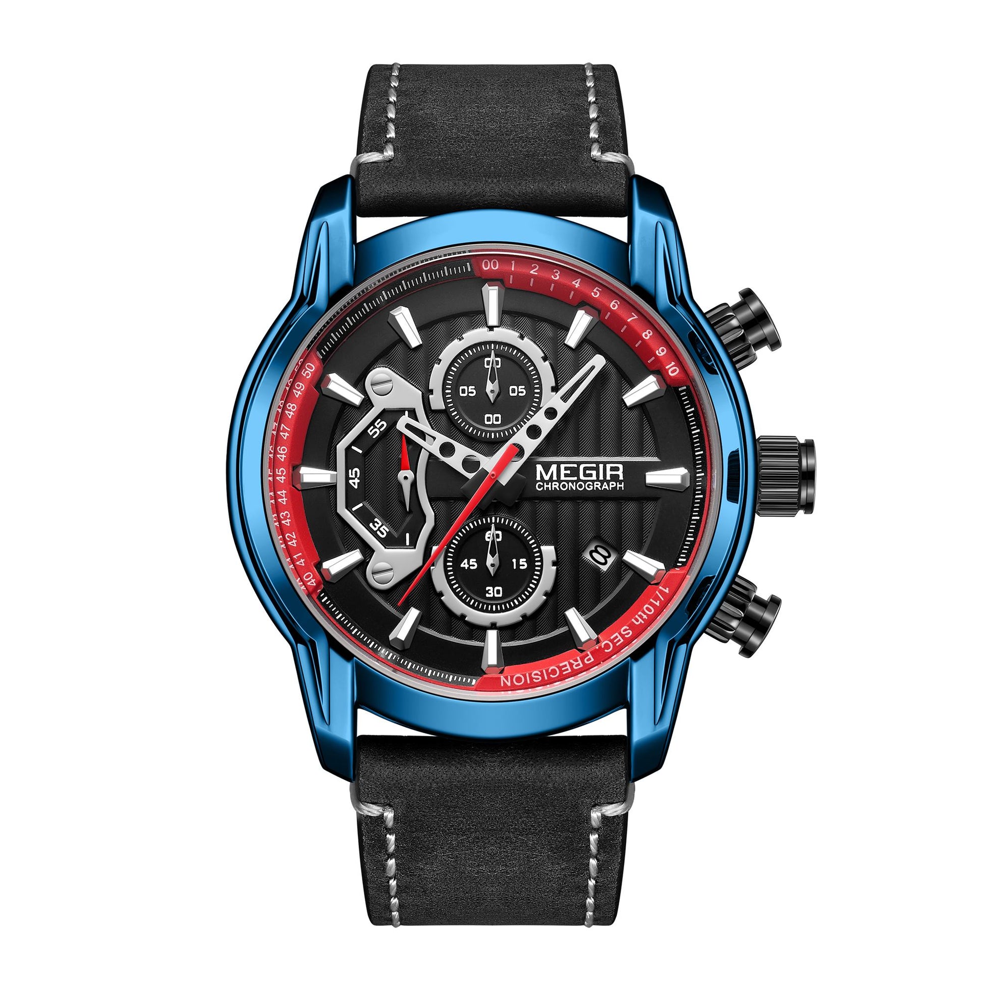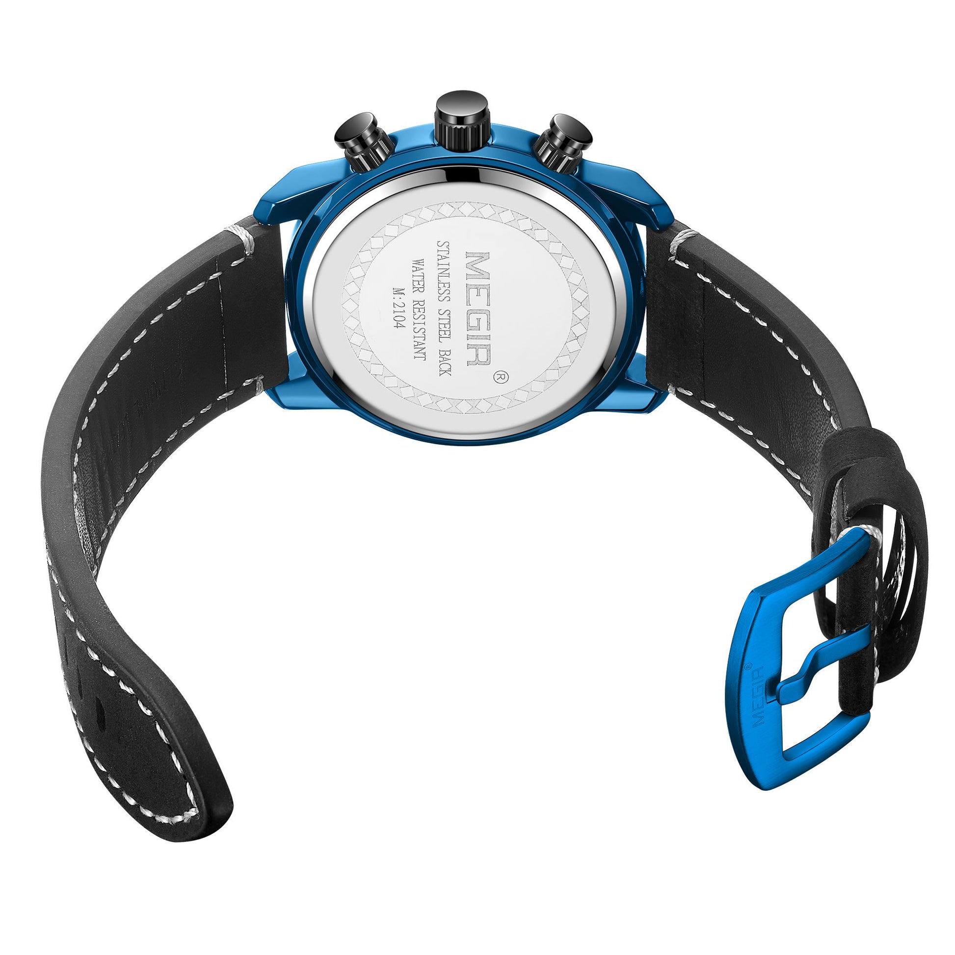 MEGIR Fashion Mens Watches Waterproof Luminous Sports Wrist Watch Man Leather Chronograph Quartz Wristwatch Reloj Hombre 2104