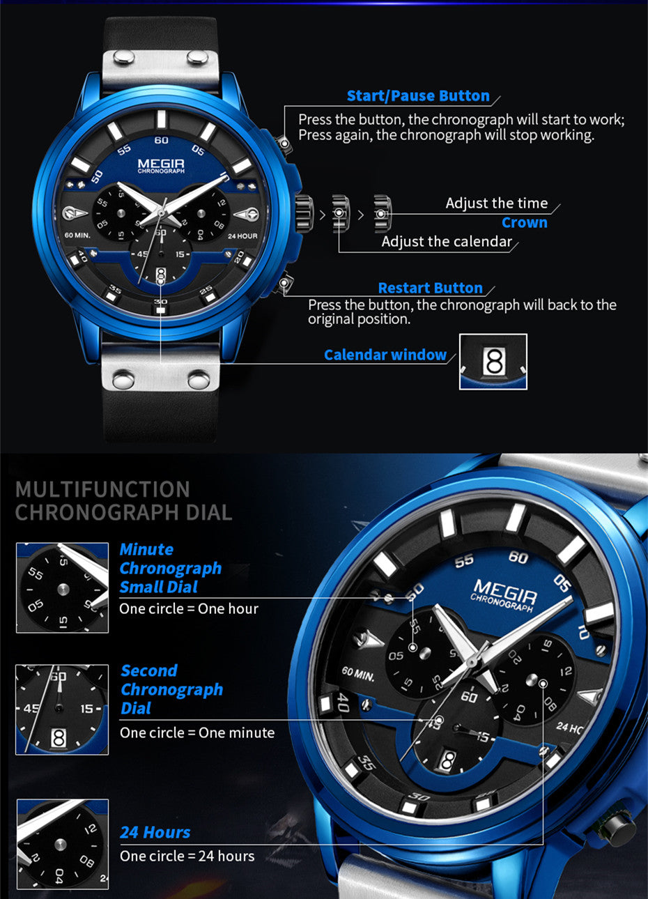 MEGIR Fashion Military Watches for Men Luxury Quartz Sport Wrist Watch Calendar Luminous Waterproof Man Clock Chronograph 2080