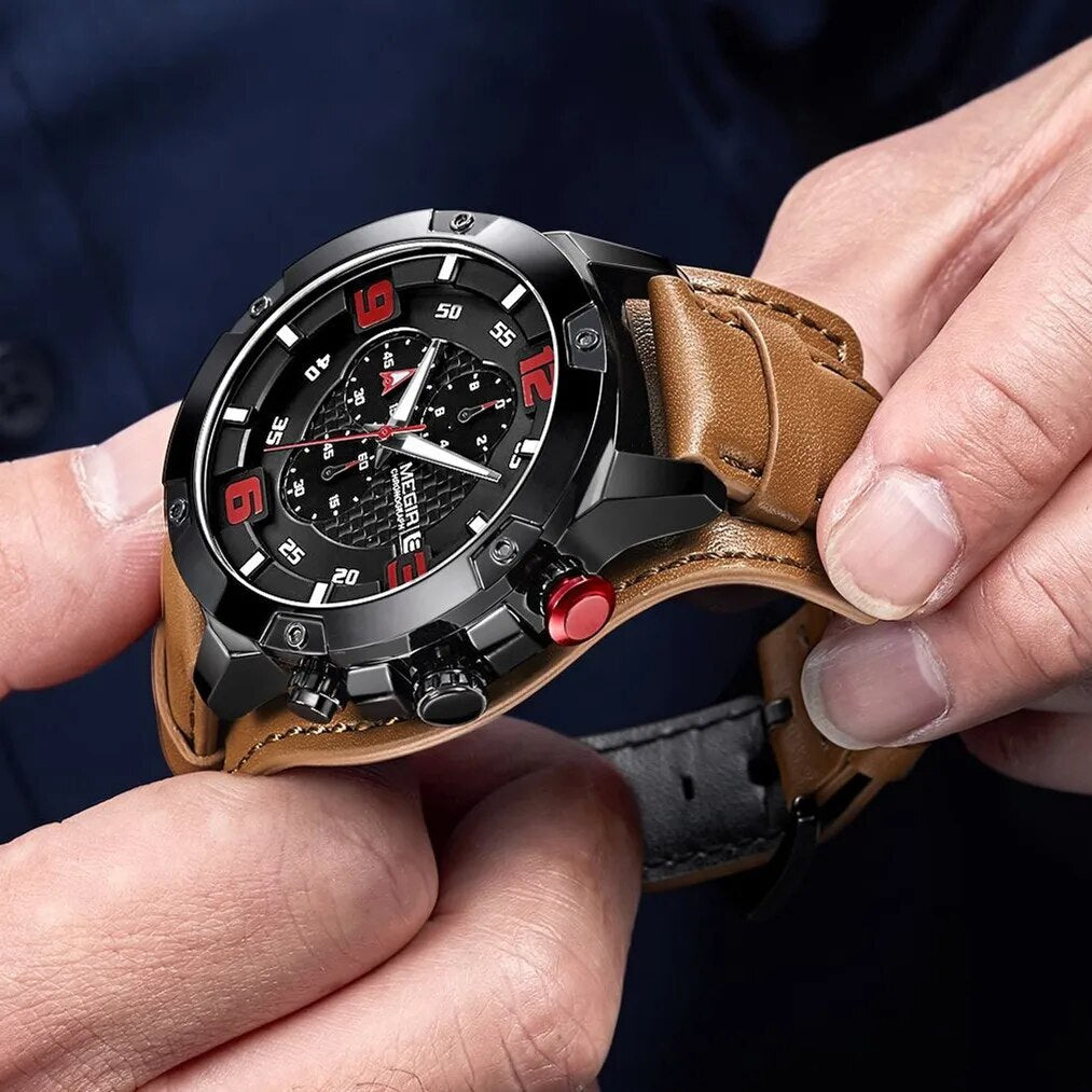 MEGIR Large Dial Watches for Men Luxury Brand Sports Chronograph Clock Waterproof Luminous Hands Quartz Wristwatch Reloj Hombre