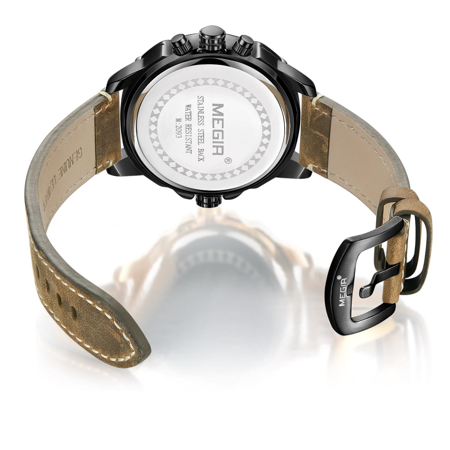 MEGIR Luxury Business Watches for Mens Leather Strap Casual Sports Wristwatch Chronograph Waterproof Male Clock Reloj Hombre