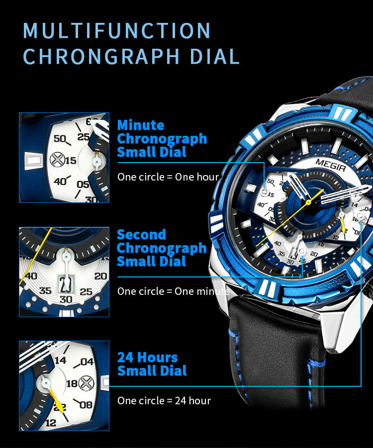 MEGIR Luxury Casual Watches for Men Fashion Leather Sports Military Wristwatch Calendar Luminous Quartz Man Clock Montre Homme