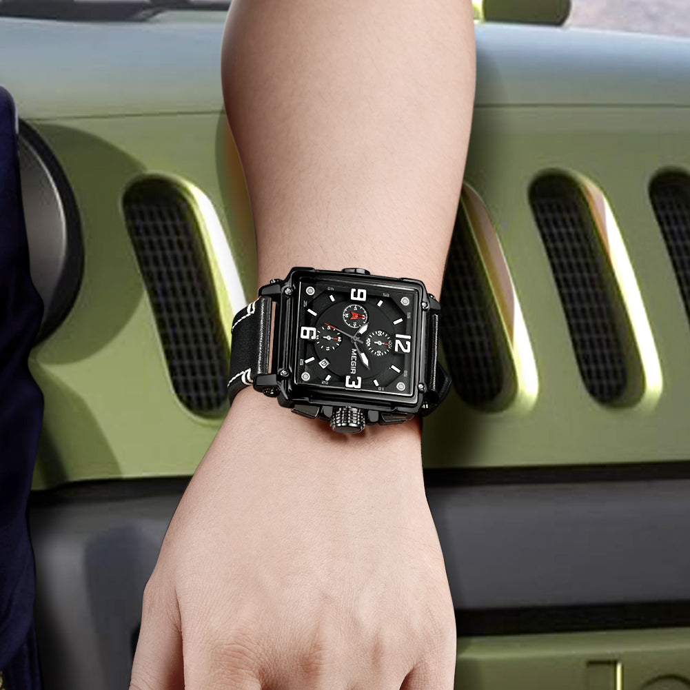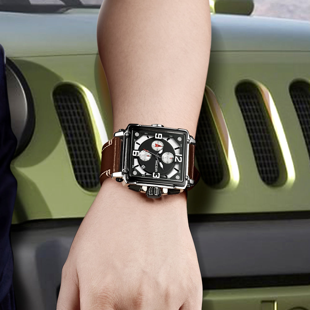 MEGIR Men Watch Top Brand Luxury Chronograph Quartz Watches Clock Men Leather Sport Army Military Wrist Watch Relogio Masculino
