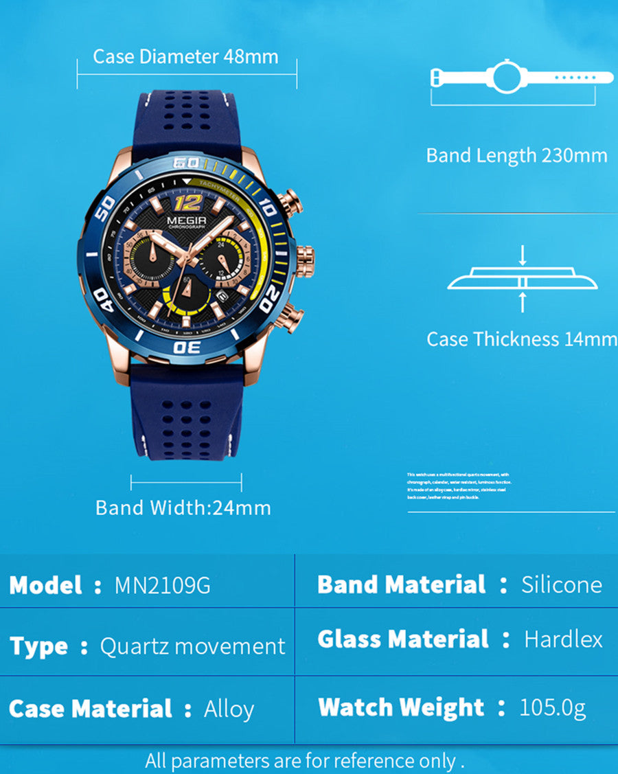 MEGIR Relogio Masculino Fashion Luxury Sports Watches for Men Waterproof Date Luminous Silicone Quartz Wristwatch Man Clock 2109