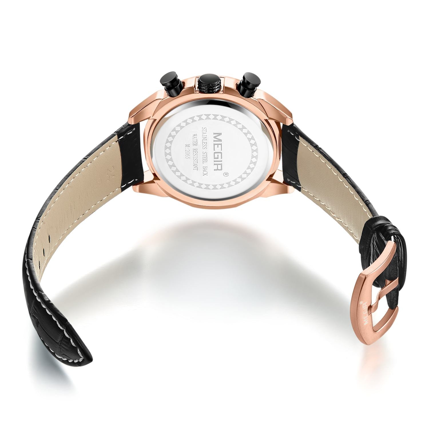 MEGIR Sport Chronograph Men's Quartz Wristwatch Waterproof Male Clock Calendar Luminous Man Watches Calendar Leather Watch 2065
