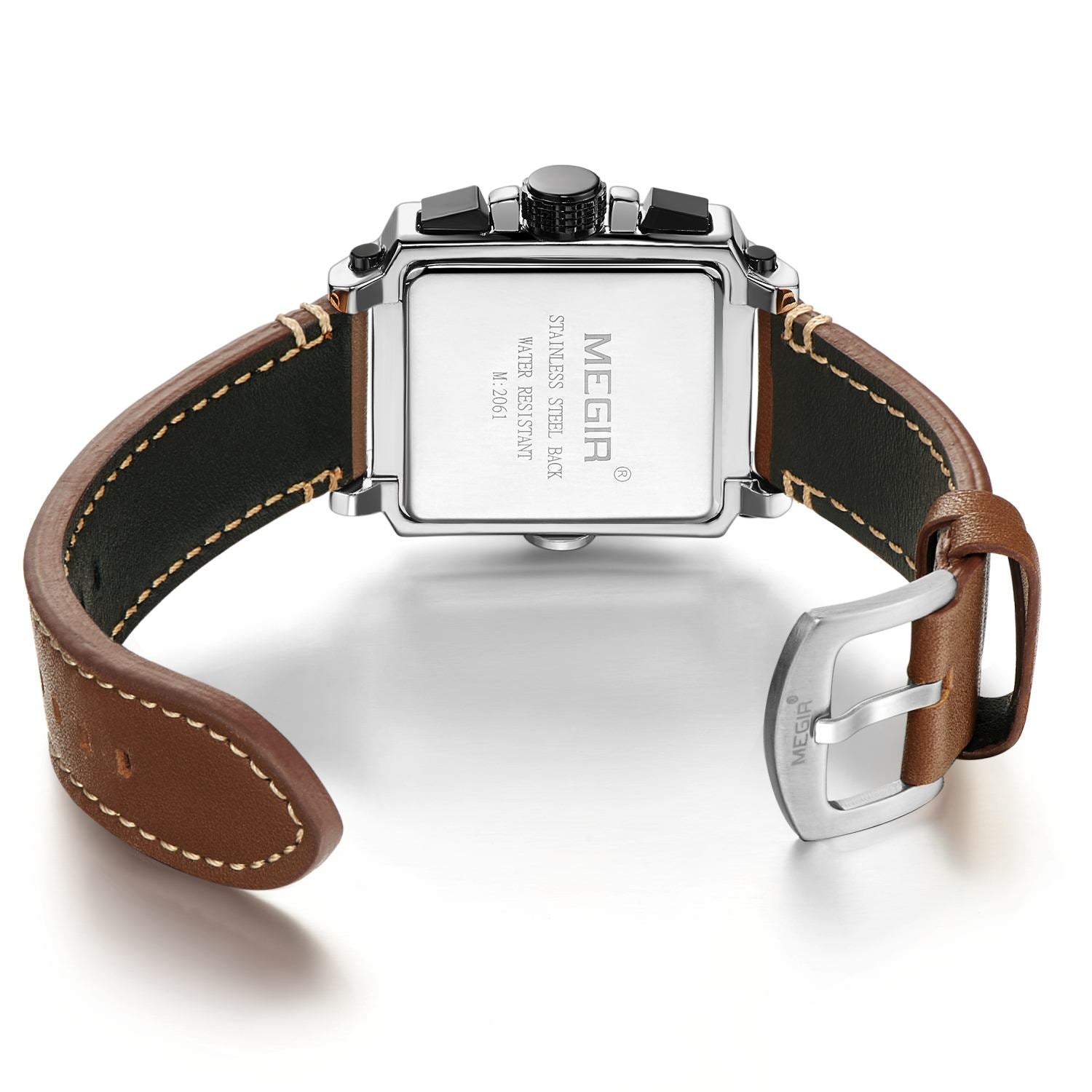 MEGIR Top Brand Watches for Men Waterproof Leather Quartz Wrist Watch Luminous Chronograph Date Calendar Men Clock Reloj Hombre 2061