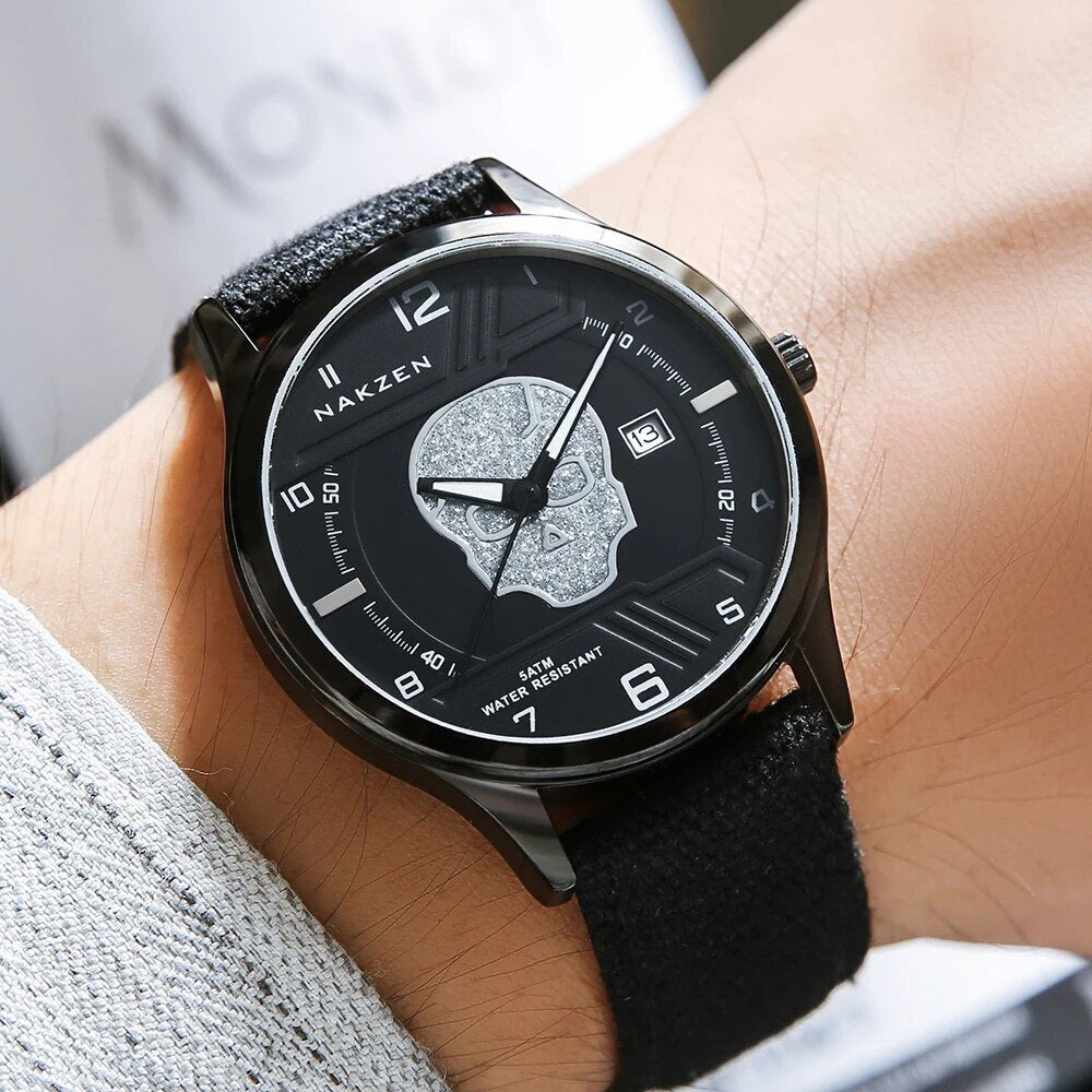 NAKZEN 2019 New Mens Watches Top Brand Luxury Fashion Skull Quartz Watch Waterproof Leather strap Luminous relogio masculino