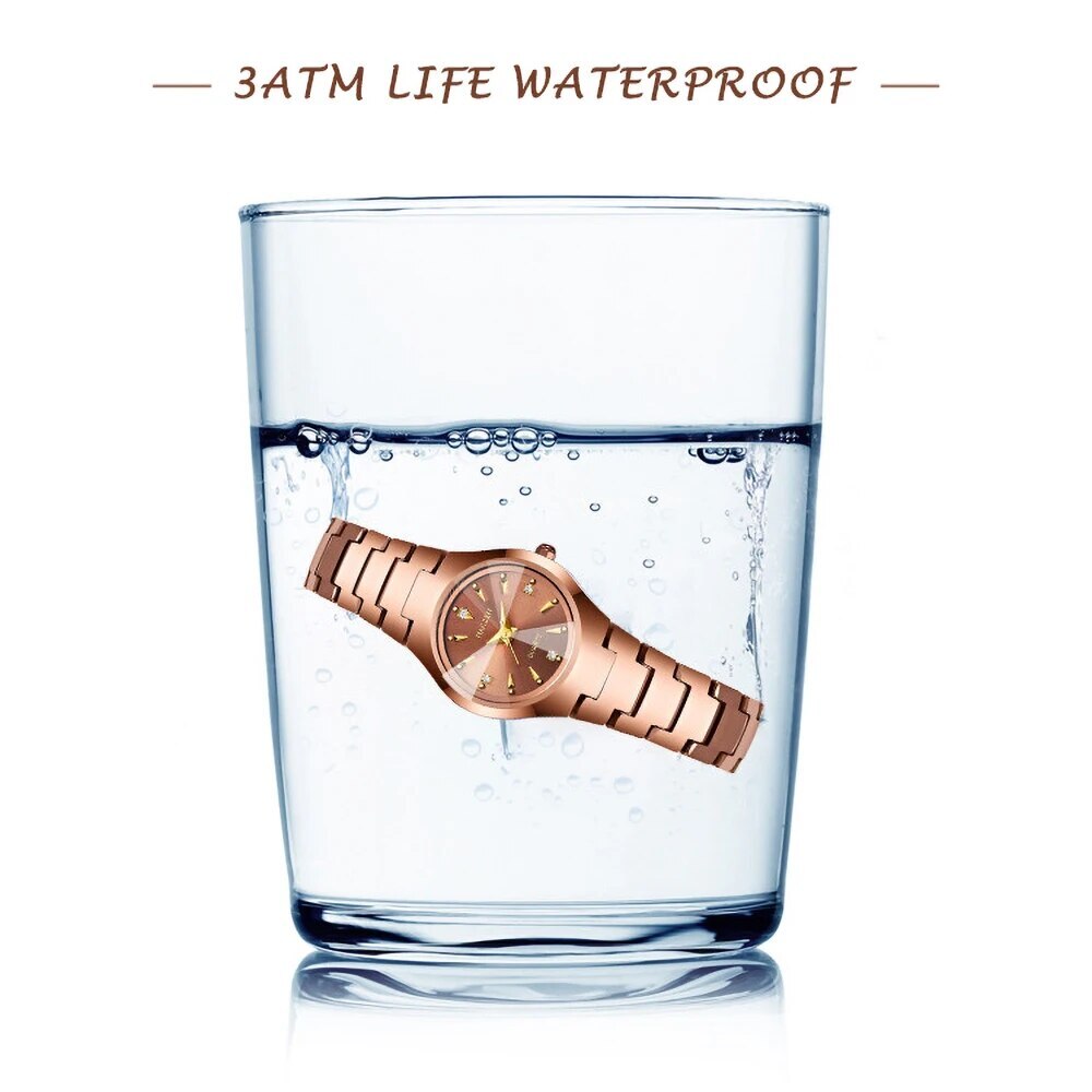 NAKZEN Fashion Women Quartz Waterproof Analog Wrist Watch with Tungsten steel Case and Diamond Simple Ladies Dress Watches