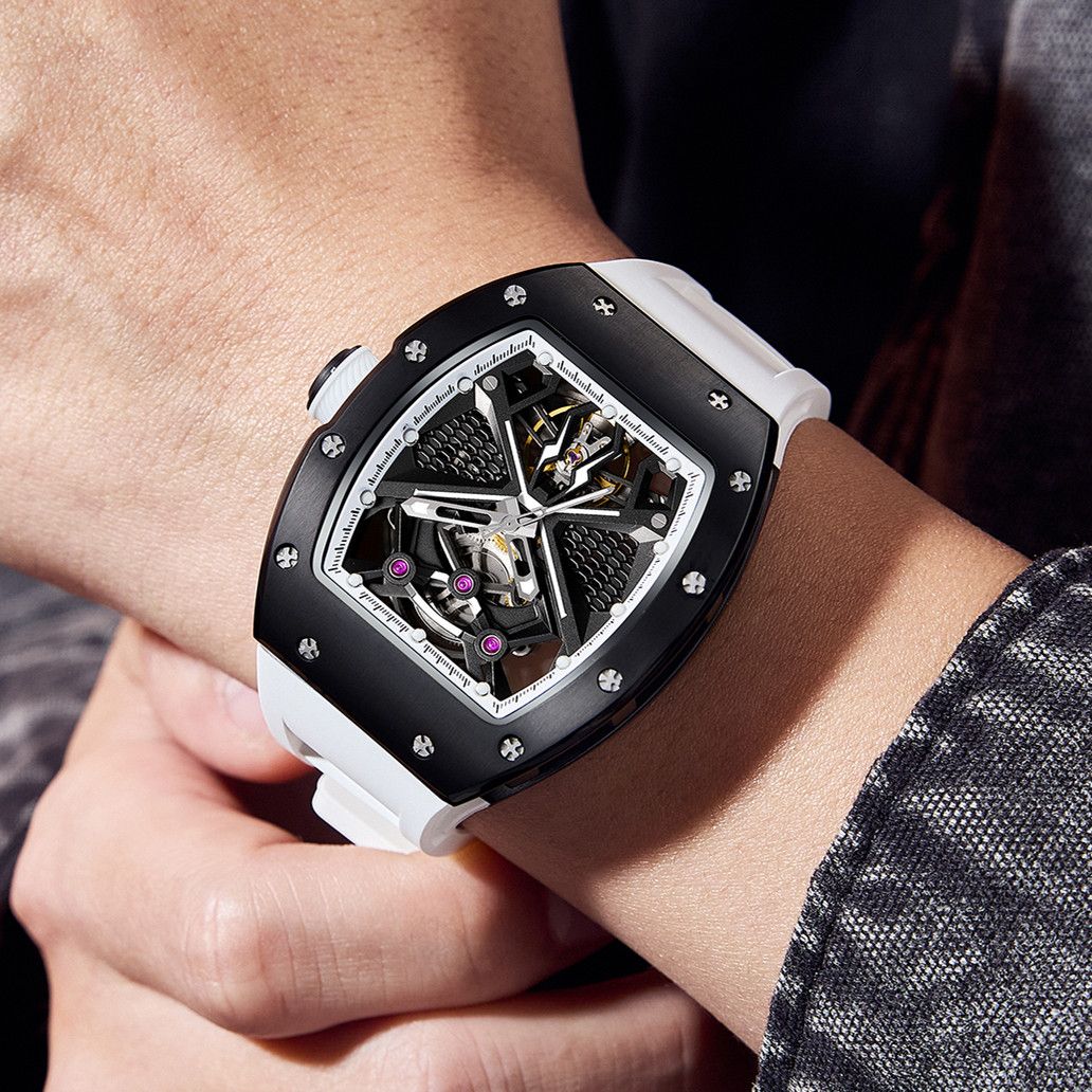 New Hollow Out Dial Men Mechanical Watch Fashion Stainless Steel Automatic Wristwatch Waterproof Watch Clock Montre Homme 9190-5