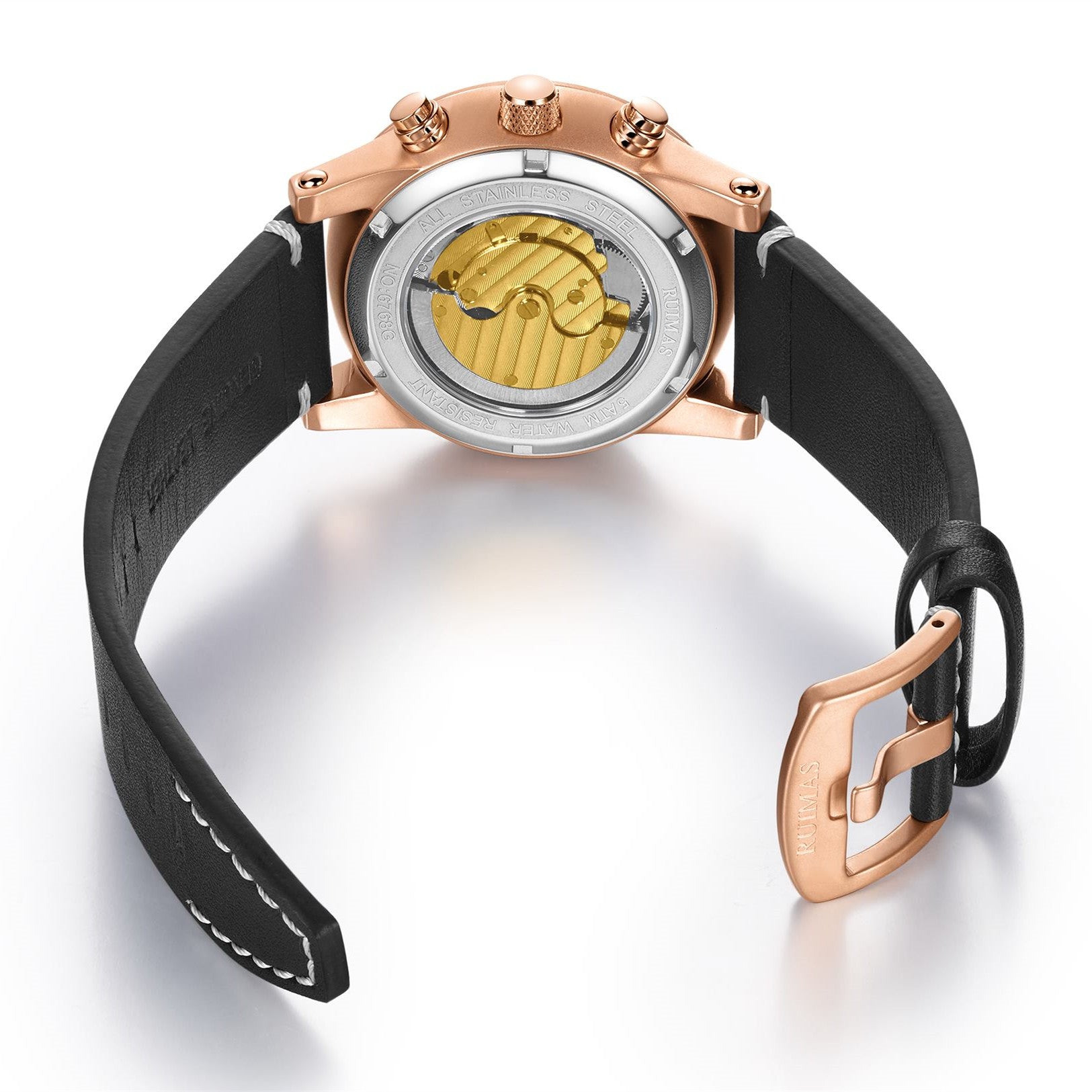 RUIMAS Fashion Men Watches Sapphire Automatic Mechanical Wrist Watch Waterproof Date Leather Casual Male Clock Montre Homme 6768