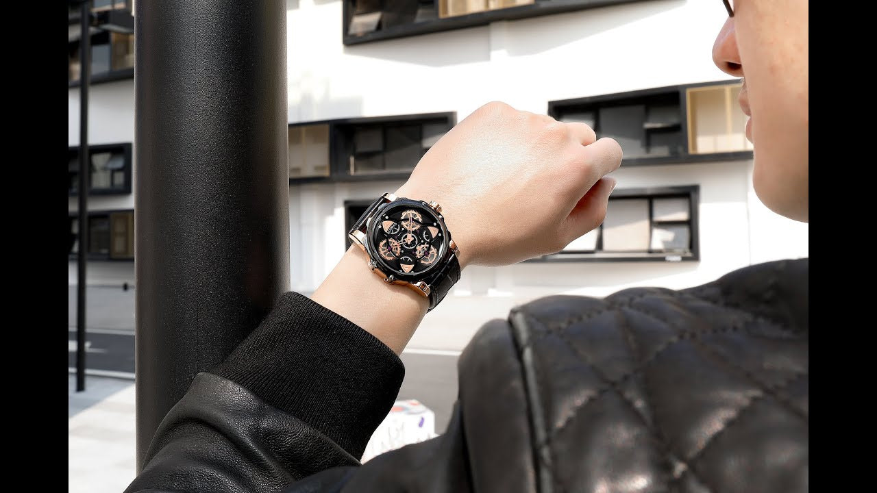 RUIMAS Relogio Masculino Fashion Leather Strap Big Dial Sports Quartz Watches for Men 3ATM Waterproof Casual WristWatch Clock
